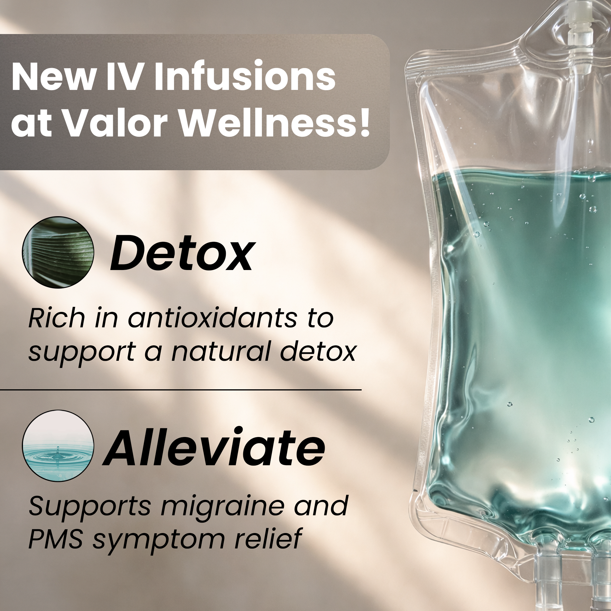 Get 25% off our new Detox and Alleviate IV Infusions in April!